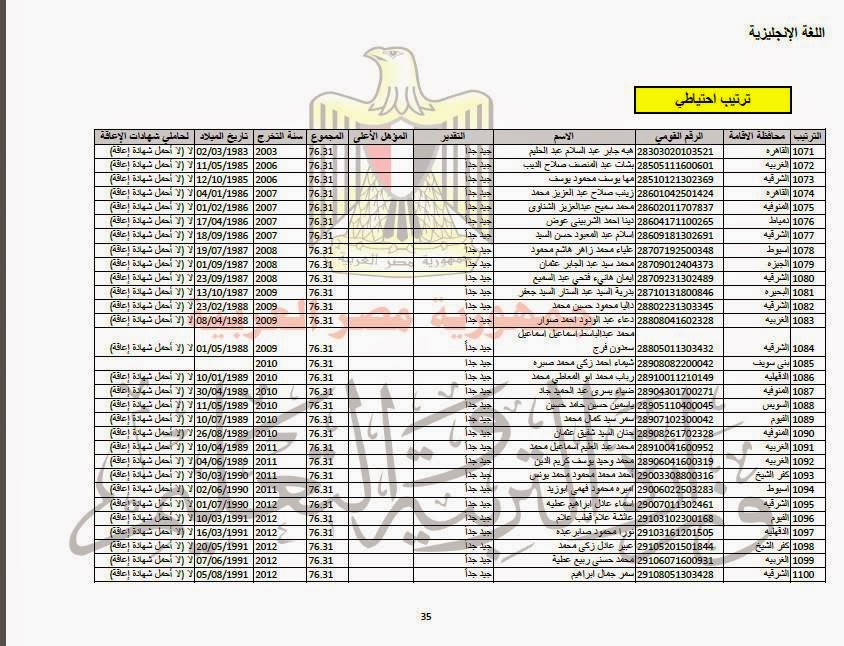 هام جدا للاحتياطى بمسابقة ال 30 الف معلم مساعد اسماء جديدة بالرقم القومى هنا