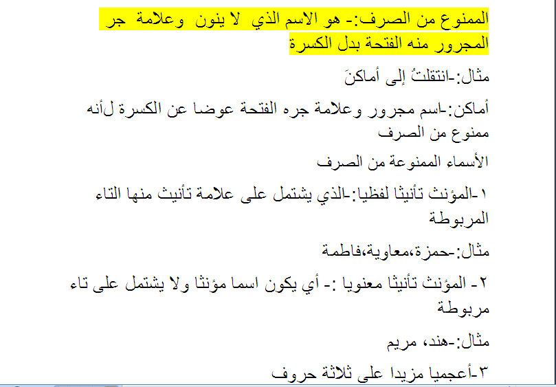 شرح درس الممنوع من الصرف لمادة اللغة العربية القواعد بطريقة مبسطة للصف العاشر الفصل الثاني منتديات صقر الجنوب