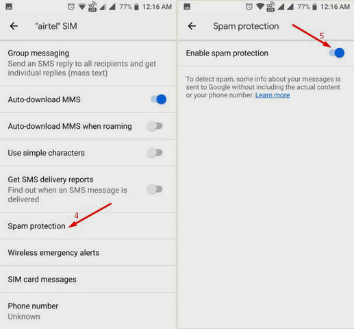 حظر الرسائل النصية Sms من شخص معين على الاندرويد
