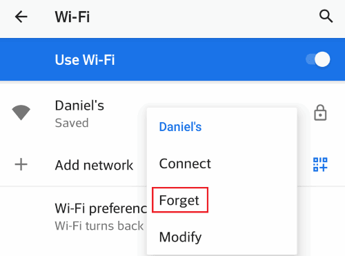 طريقة حذف شبكة الواي فاي من الاندرويد