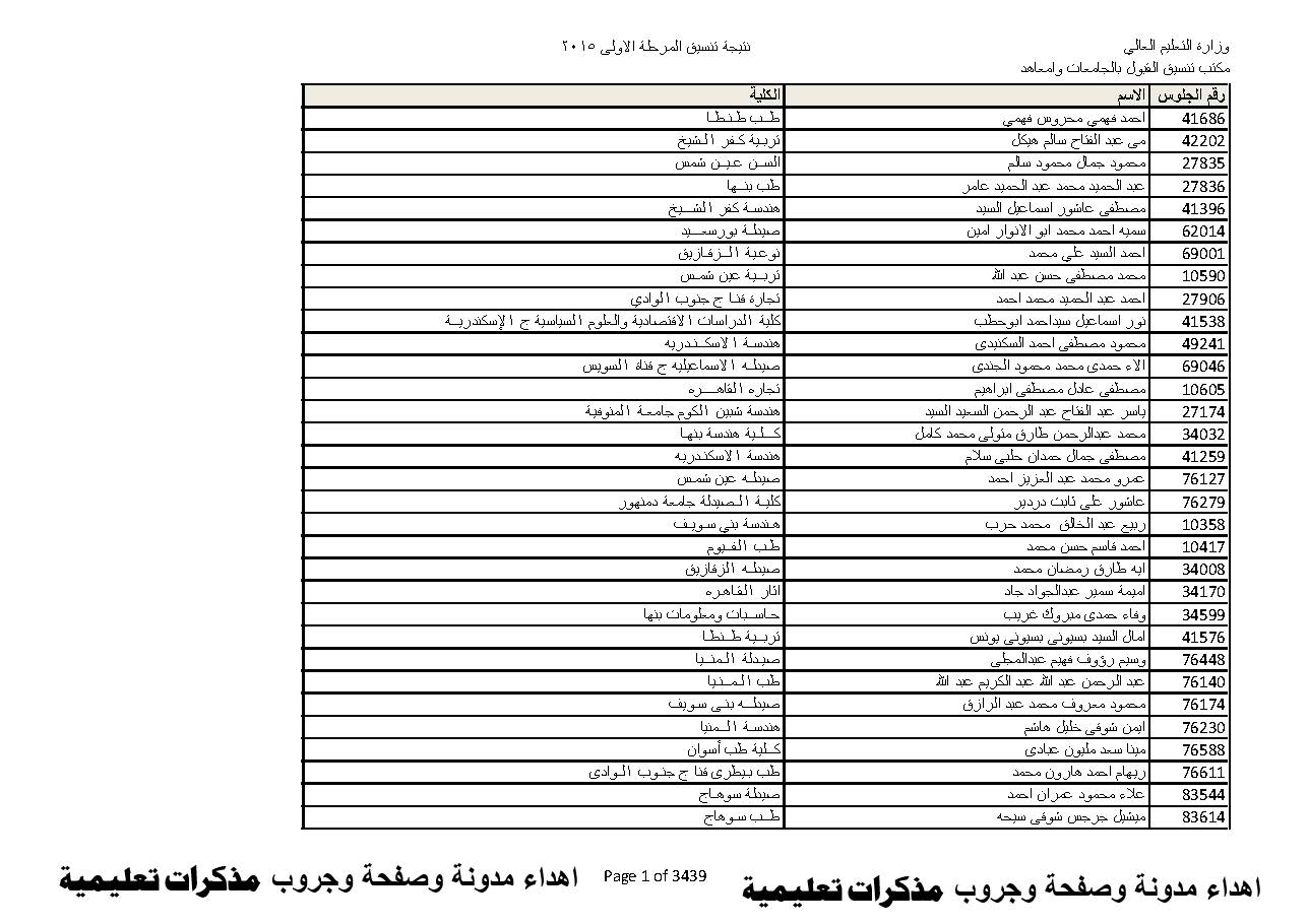 نتيجة تنسيق الثانوية العامة بالاسم 2015 حمل الملف به جميع اسماء طلاب الثانوية المتقدمين للمرحلة الاول