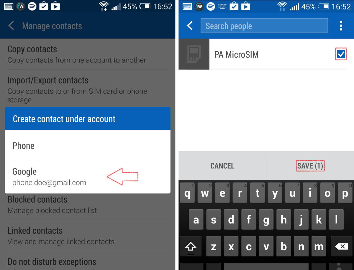 نقل جهات الاتصال من الهاتف إلى شريحة Sim على الاندرويد