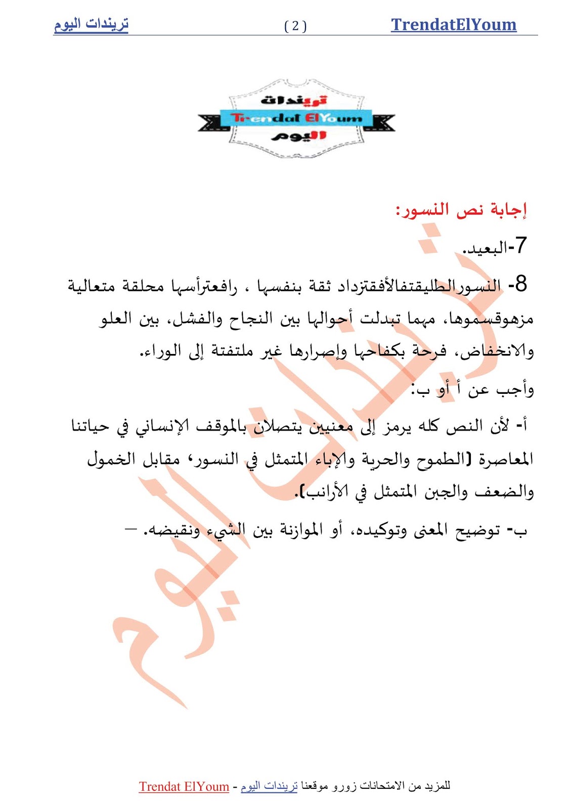 ننشر نموذج إجابة امتحان مادة اللغة العربية للصف الثالث الثانوى 2019 اليوم السابع