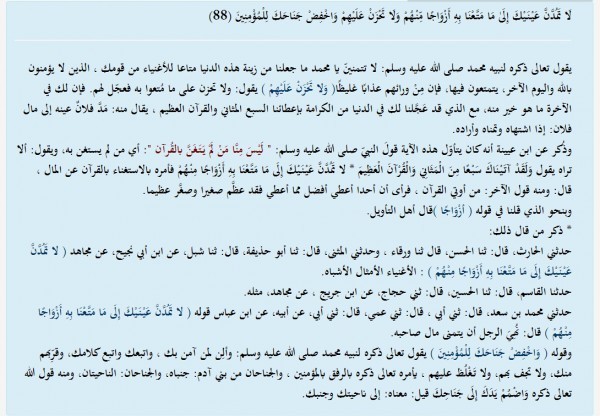 ل ا ت م د ن ع ي ن ي ك إ ل ى م ا م ت ع ن ا ب ه أ ز و اج ا م ن ه م و ل ا ت ح ز ن ع ل ي ه م و اخ ف ض ج ن اح ك ل ل م ؤ م ن ين تفسير القرطبي الحجر 88